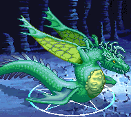 Blue Dragon Fiend creates a Water Tornado which sucks the whole group towards it and then up in the air. The landing seems to hurt alot.